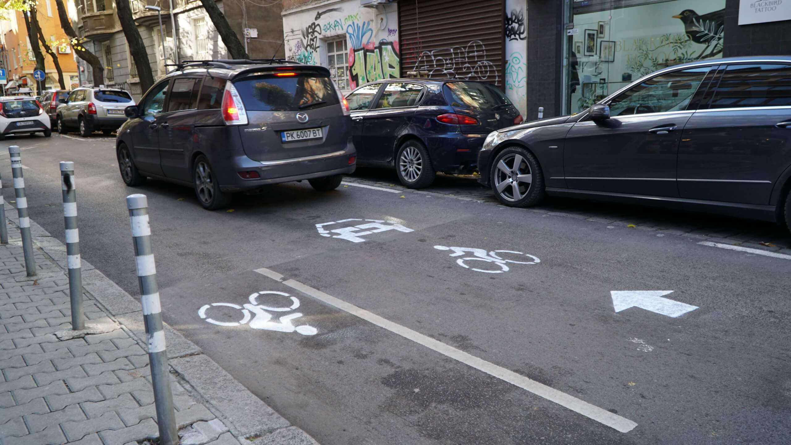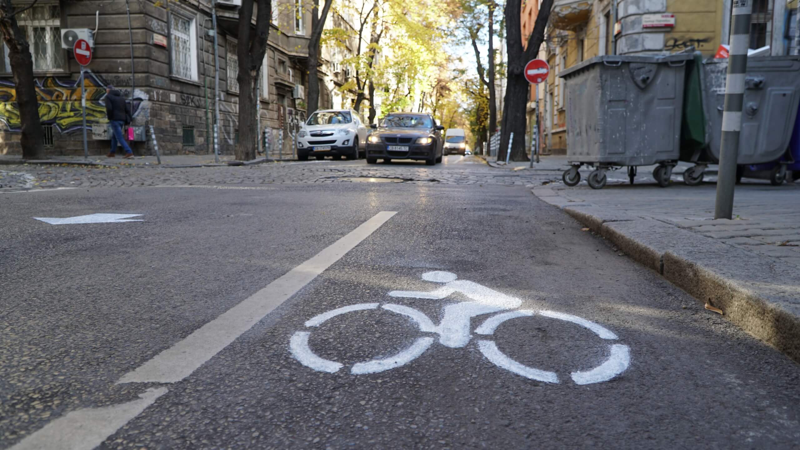 В социалните медии забелязахме новина за маркирана т.нар. контра-флоу велосипедна лента на еднопосочна улица в центъра на София. Докато и ние любопитствахме около мястото (ул. Княз Борис I между ул. Алабин и ул. Патриарх Евтимий), нямаше как да не забележим, че доста от минувачите и жителите на кватрала оживено коментираха нововъведението – защо изглежда така и какви трябва да са правилата за движение в подобна ситуация.